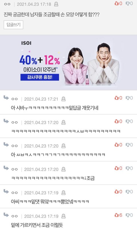 한남수준 토나온다 ㄹㅇㅋㅋㅋㅋ 손가락모양만 잘못 움직여도 남혐이너 개웃기네