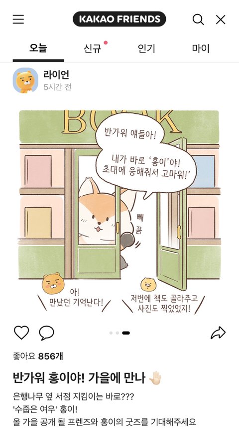 카카5에 새로 생긴 여우 캐릭터인데 이름이 ‘홍이’래