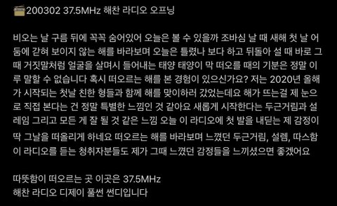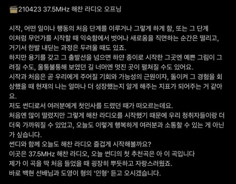 이런 멘트 너무 좋다.. 출근 시간때마다 하나씩 녹음본이라도 올려줬으면