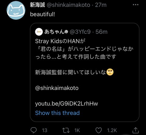 영화 너의이름은 감독님이 언급!