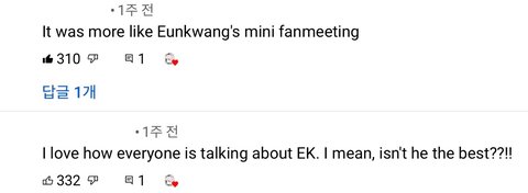 이건 광덤이다, 레전더리 워 아니고 레전더리 은광이다, 은광이 팬미팅 같다, 다들 은광이 언급해줘서 좋다, 은광이 섭외한 건 신의 한 수다, 리더로 잘 뽑았다, 은광이 덕에 진지한 분위기도 다 풀어지고 재밌다, 당신이 비투비의 팬까지는 아니더라도 확실한 건 비투비를 싫어할 수는 없다! 대개 이런 내용들임