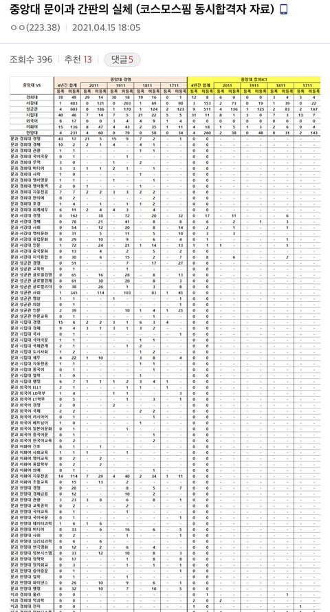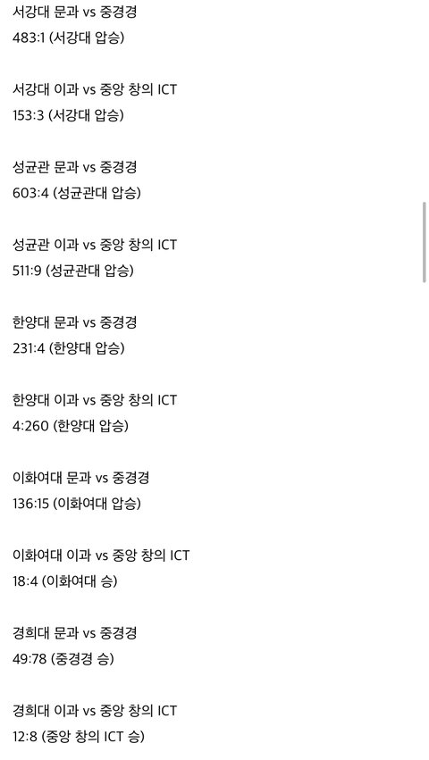 올해 고속성장이 발표한 동시합격 자료 보면 중대 문이과 간판인 중경경이랑 창의 ict 둘 다 선호도가 중대생들이 말하는 것보다 많이 낮음