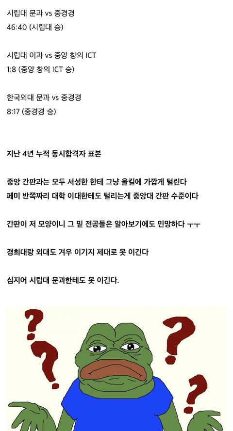 그 입결표 (심지어 마지막 한명의) 꼬리입결이 중대와 비슷한 수준의 타대학보다 잘나온다고 매번 서성한중 거렸잖아