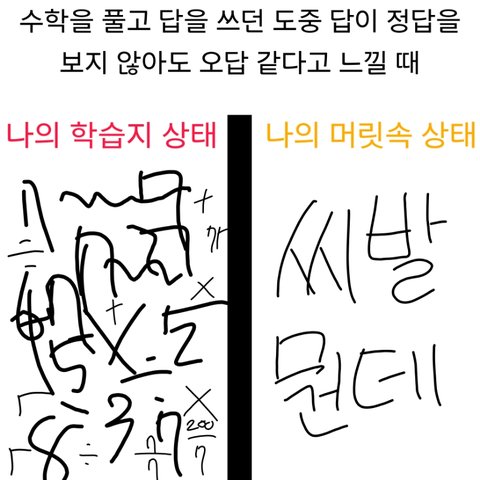 수학을 풀고 답을 쓰던 도중 답이 절대 이게 나올 수 없을텐데 싶을 때