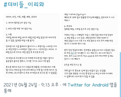 만약 틧터 계정 알려지는거 때문에 문제대면 삭할겡!