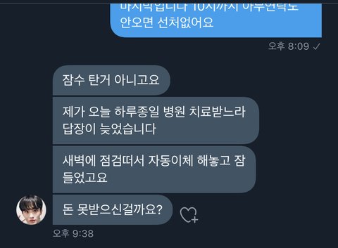 어제 밤부터 연락없더니 방금 온게 저거임 ㅅㅂ 우린 그걸 잠수라고 부르기로했어요