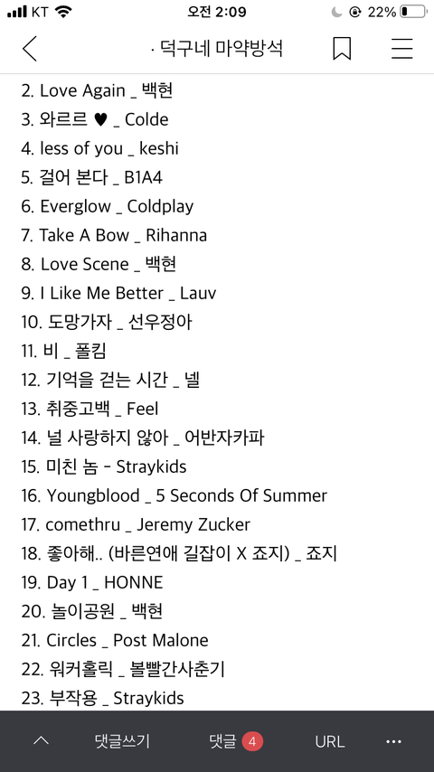 승민 플레이리스트라는데 여기 백현 노래가 5개인가 됨 ㄷㄷ 다 신곡