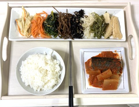 지인이 보내주신 나물류와 계절 채소로 나물 반찬을 위주로 단백질도 함께.삶고 볶고 구워 한접시 식사낫또 비빔밥고등어가 싱싱해보여 무많이 고등어 조림청양고추, 실고추 계란말이, 식감좋은 오이무침 나물 반찬옆집 아주머니의 단짠 조림 반찬(맛있었지만 짜서 몇번에 나눠 먹음)나물반찬, 배추겉저리, 감자 조림숭어가 제철인지 많이 나와 있어서 한마리.