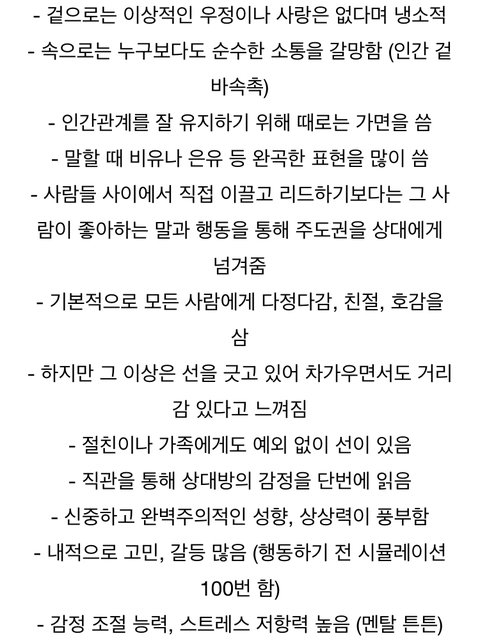 특히 맠은 infj 장점이란 장점은 모조리 때려넣은 거 같음