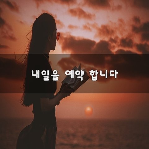내일을 예약합니다.저기 저 하늘과 같이눈부시게 파란 내일을 예약합니다. 내일은 생각이 젊어져서불가능을 가능으로 만드는 정열이 살아나고내일은 가슴이 건강해져서진리를 위해 양심의 고동을 울릴 수 있고내일은 마음을 활짝 열어미움이 사라지고 더불어 사는 날이길, 내일을 예약합니다.저기 저 아침해같이타오르는 붉은 내일을 예약합니다. 내일은 생각이 요동쳐서좌절했던 자리에서 도전하는 자리로 바뀌고내일은 가슴이 뜨거워져서사랑을 위해 진실의 고백을 나눌 수 있고내일은 마음이 손을 잡고시기와 질투가 없는 정스러운 날이길, 내일을 예약합니다.남은 건어제의 실패와 어려움밖에 없습니다 그러나오늘 흘린 진실한 땀과 소중한 노력으로내일을 예약합니다.