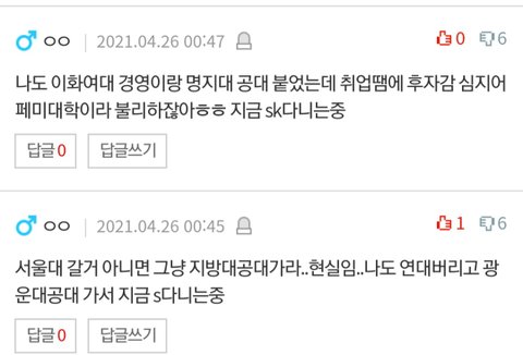 상위 20퍼센트만 되도 흔히 잡대라고 까이는 곳에 감