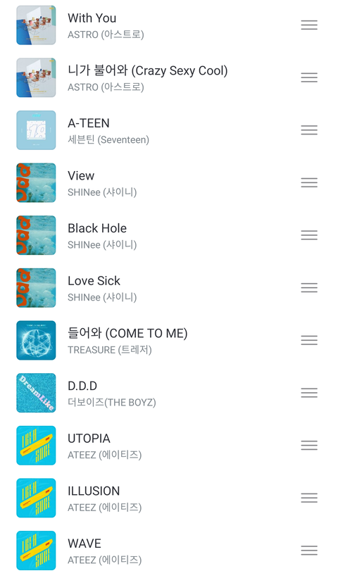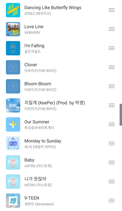 원래 내 청량 남돌 플리에 200곡 있지만 간추리고 간추려서 절반만 가져왔으니 다 믿고 들으셈