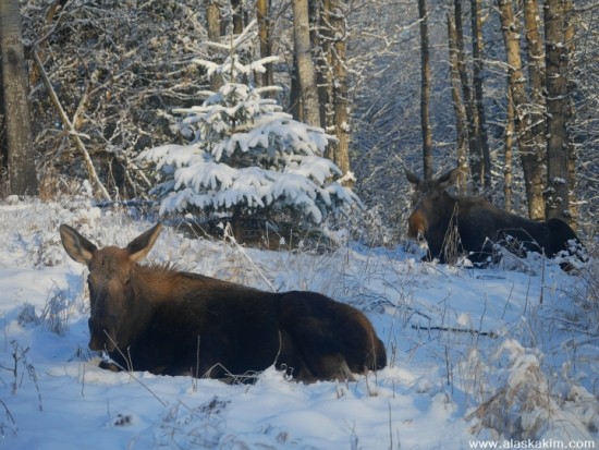 겨울에는 알래스카 곳곳에서 무스를 수시로