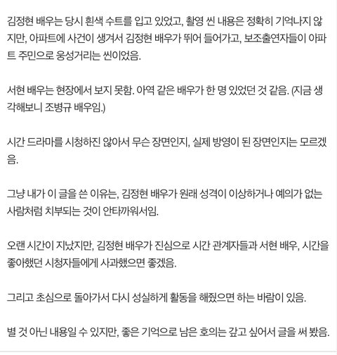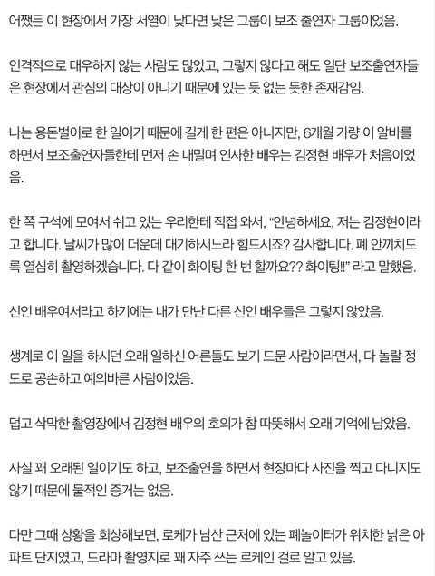 시간현장에서 김정현을 직접 경험한 어느 한 단역배우의 글