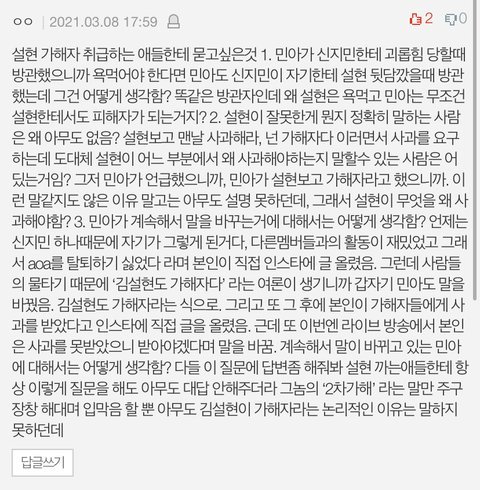피해자랑 인스타에서 친구도 안되있는 상태고 AOA랑 다르게 잘 못지냈다는 증거들이 더 많아 그냥 너네가 설현 이때다싶어서 열폭하면서 까는거잖아 페북,쭉빵,여시,유튜브,인스타 악플러들 너네 다 고소당해라