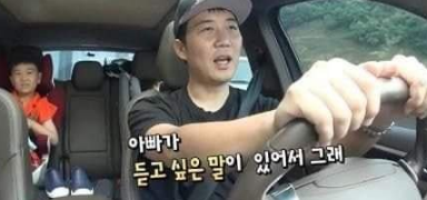 도경완과 연우가 차 안에서 끝말잇기를 하면서 가고 있음