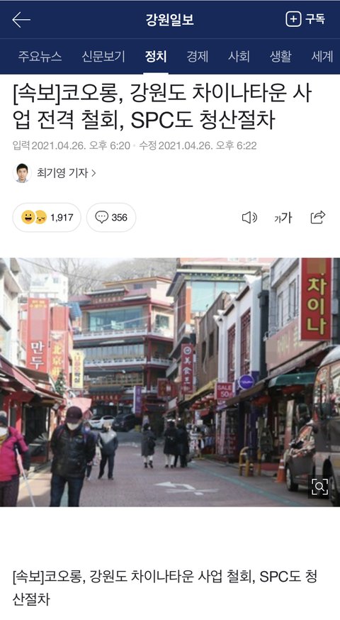 코오롱, SPC 강원도 차이나타운 사업 철회