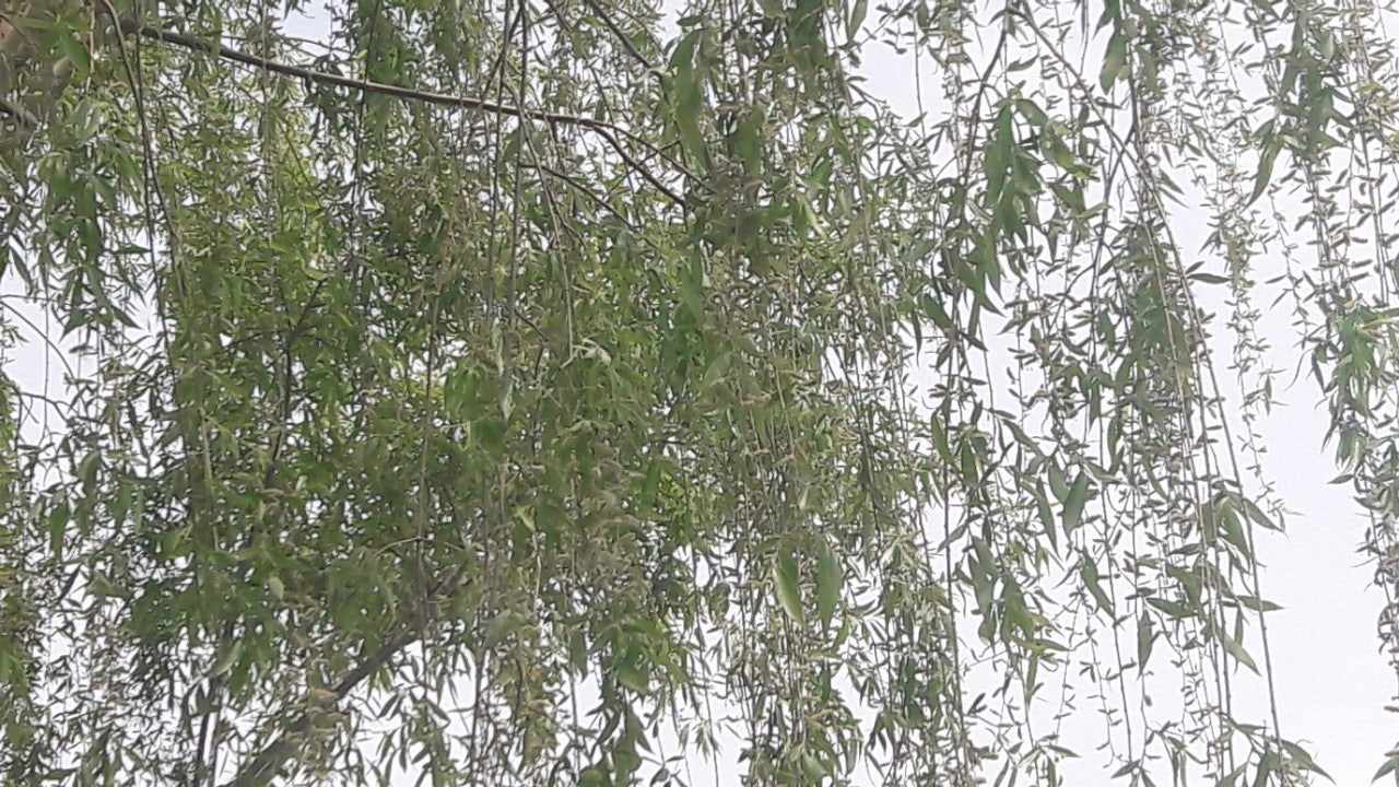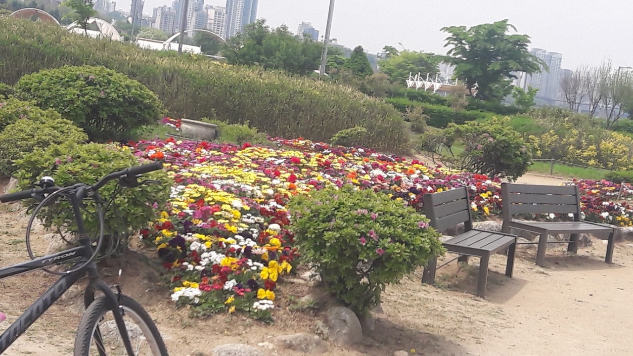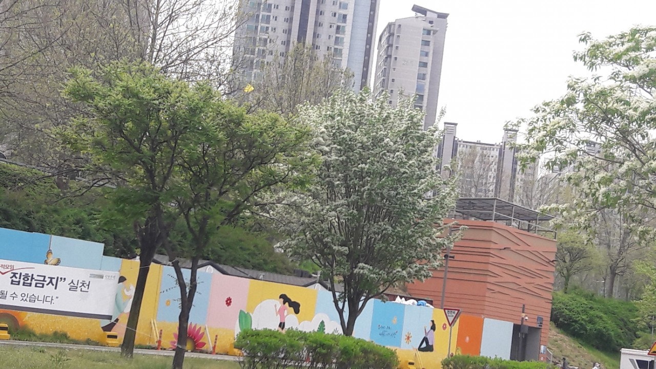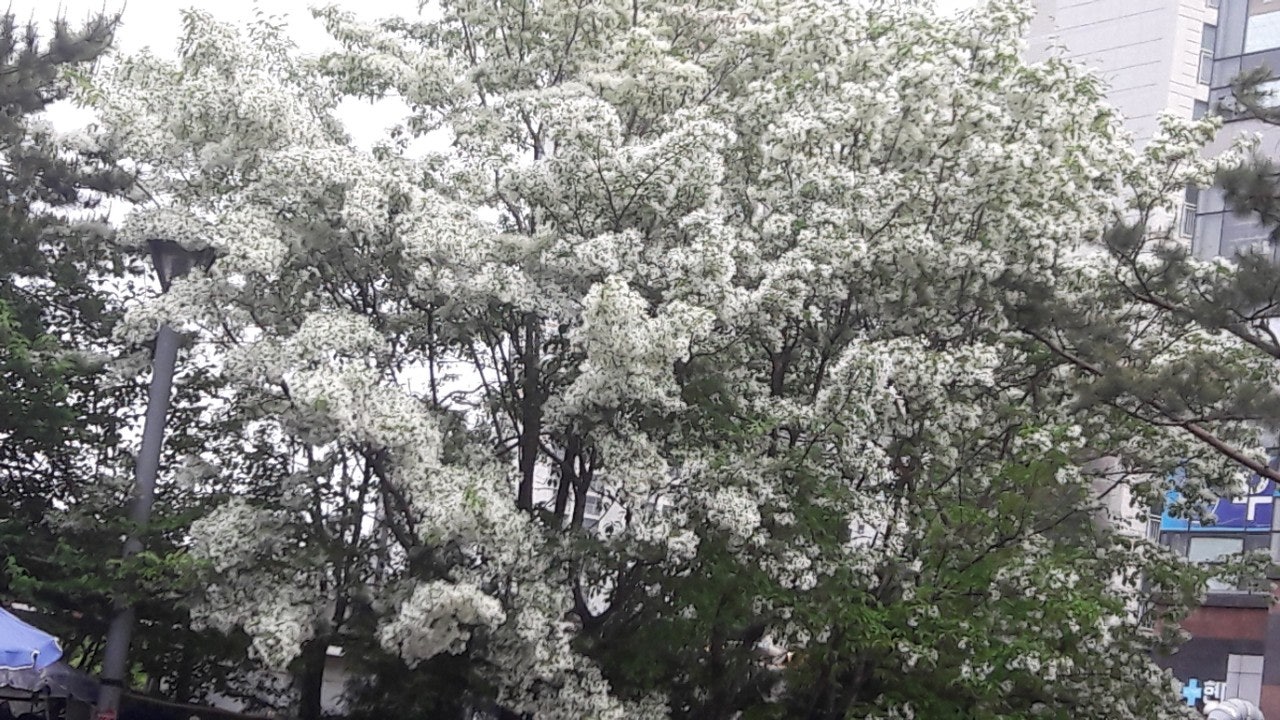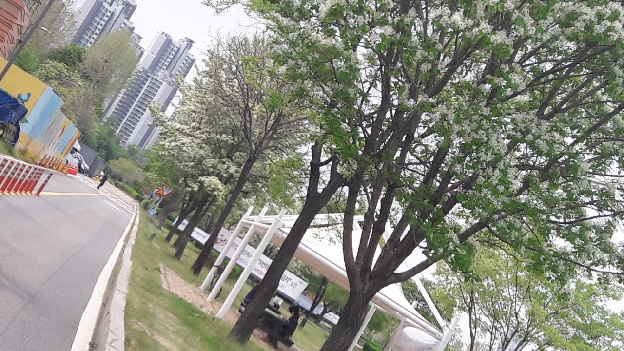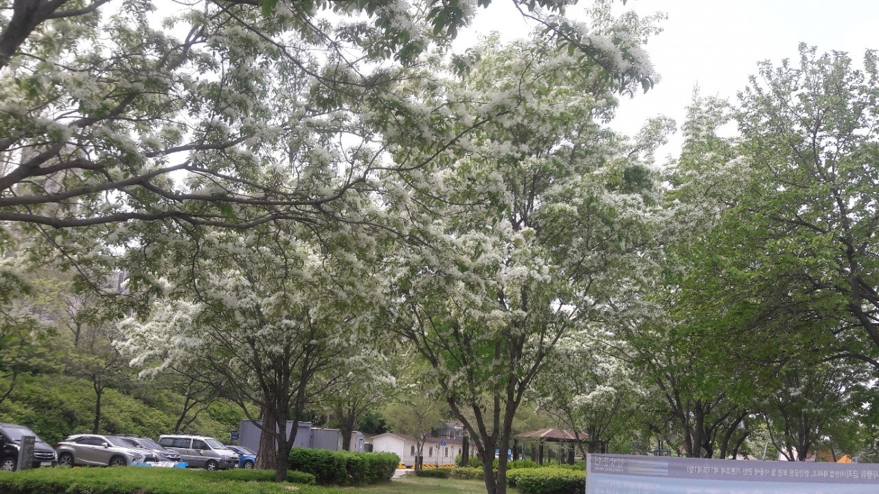 한강 공원 수양버들 조팔나무꽃