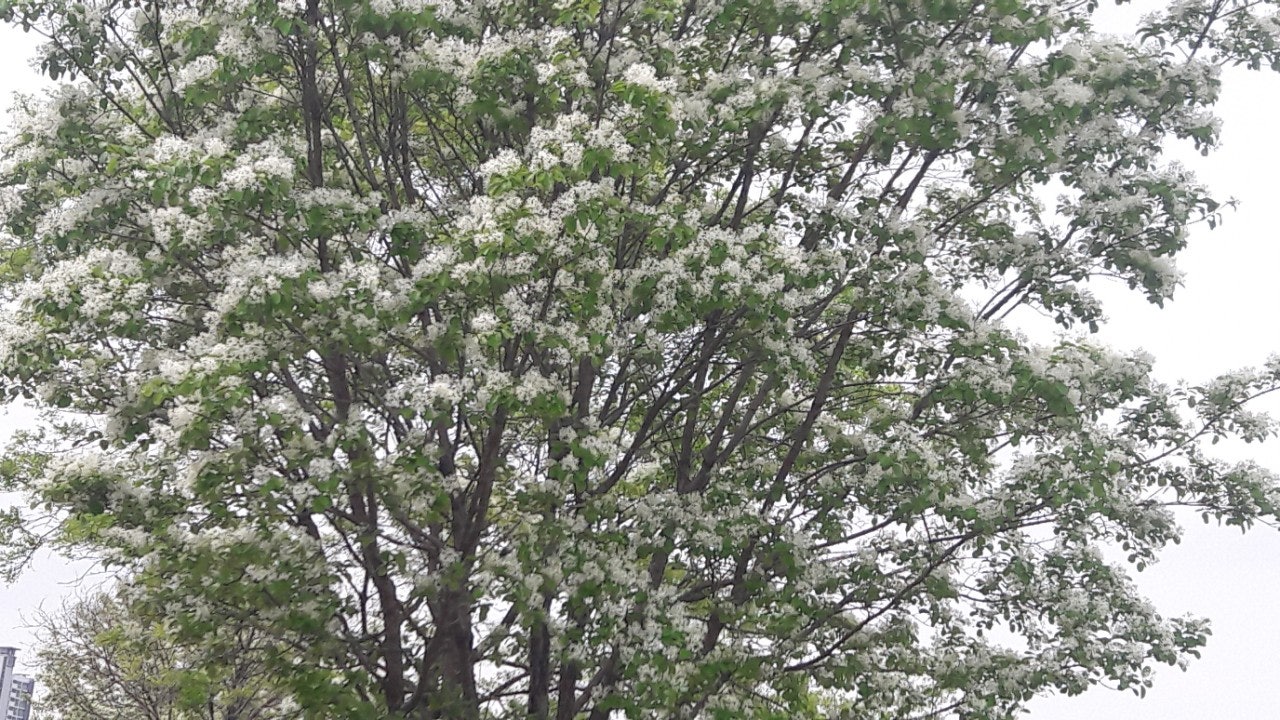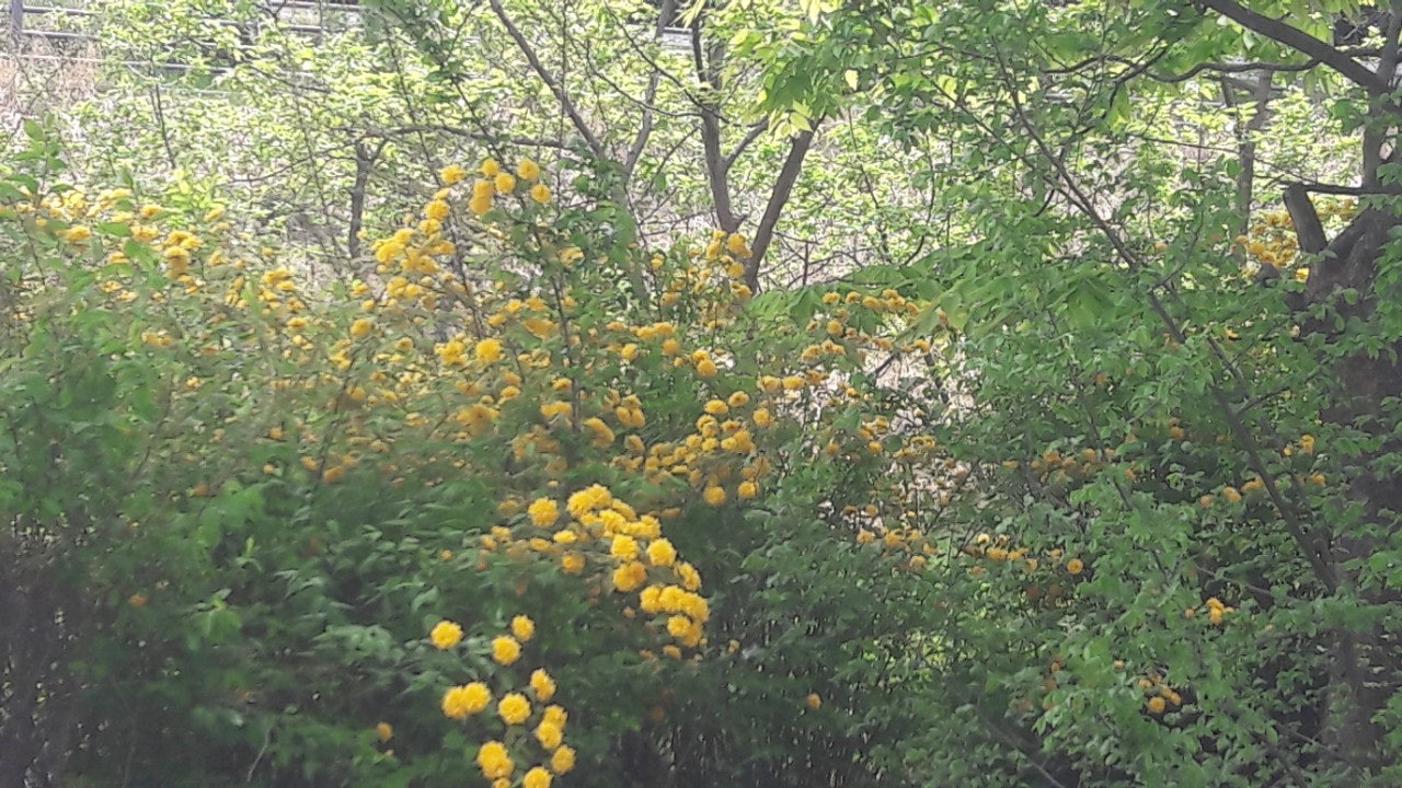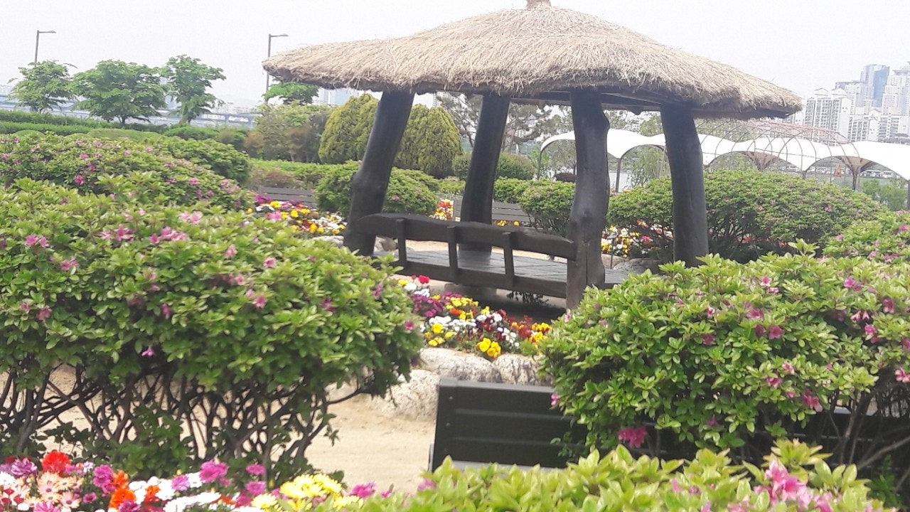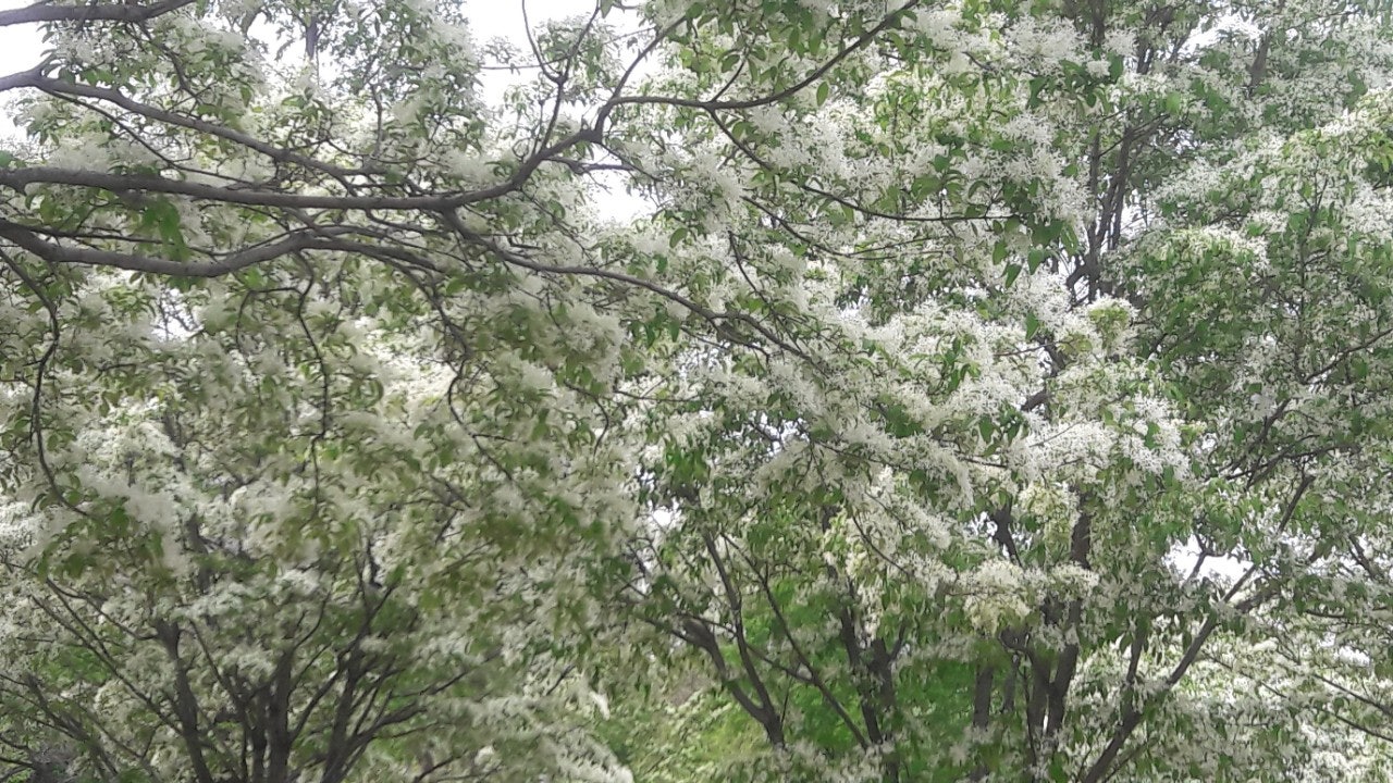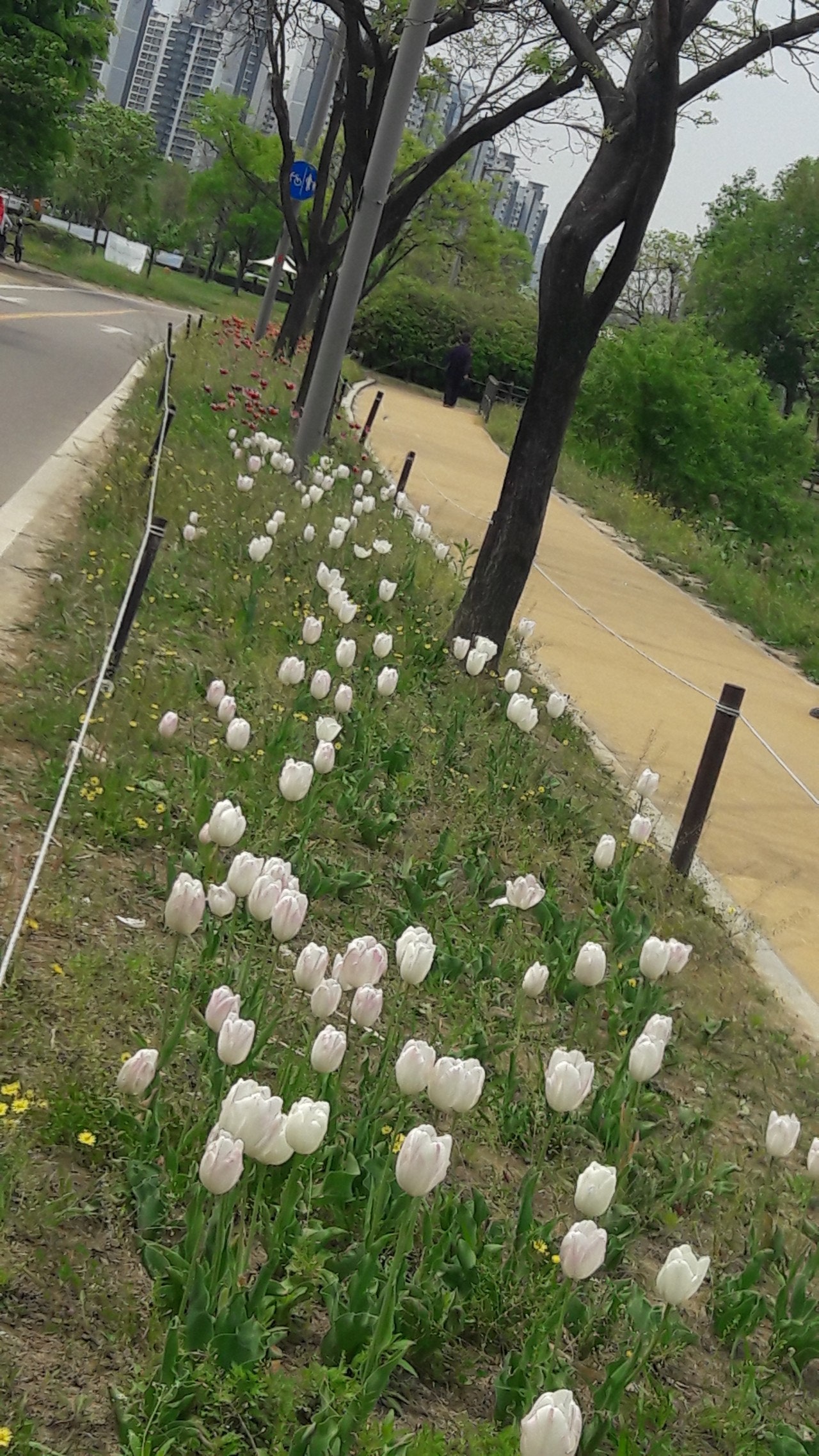 한강 공원 수양버들 조팔나무꽃