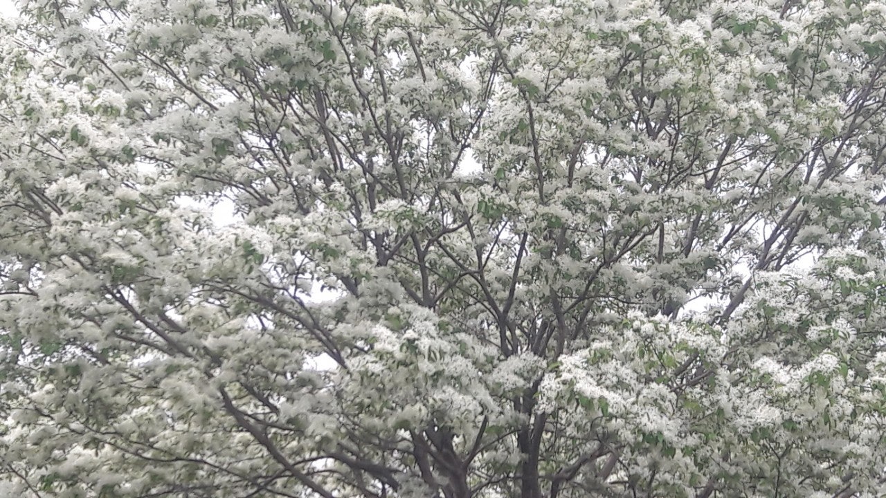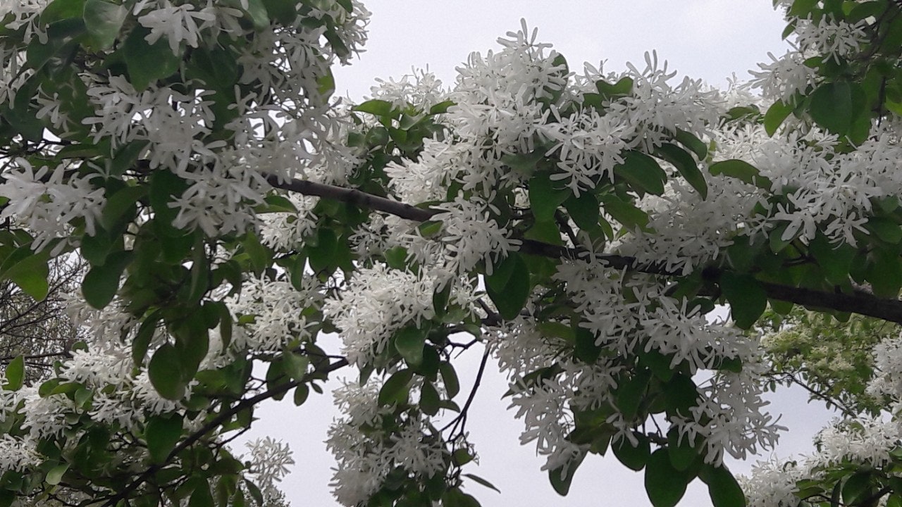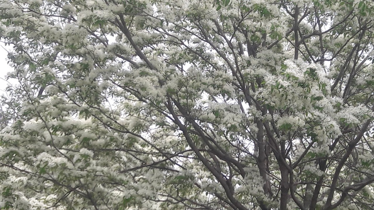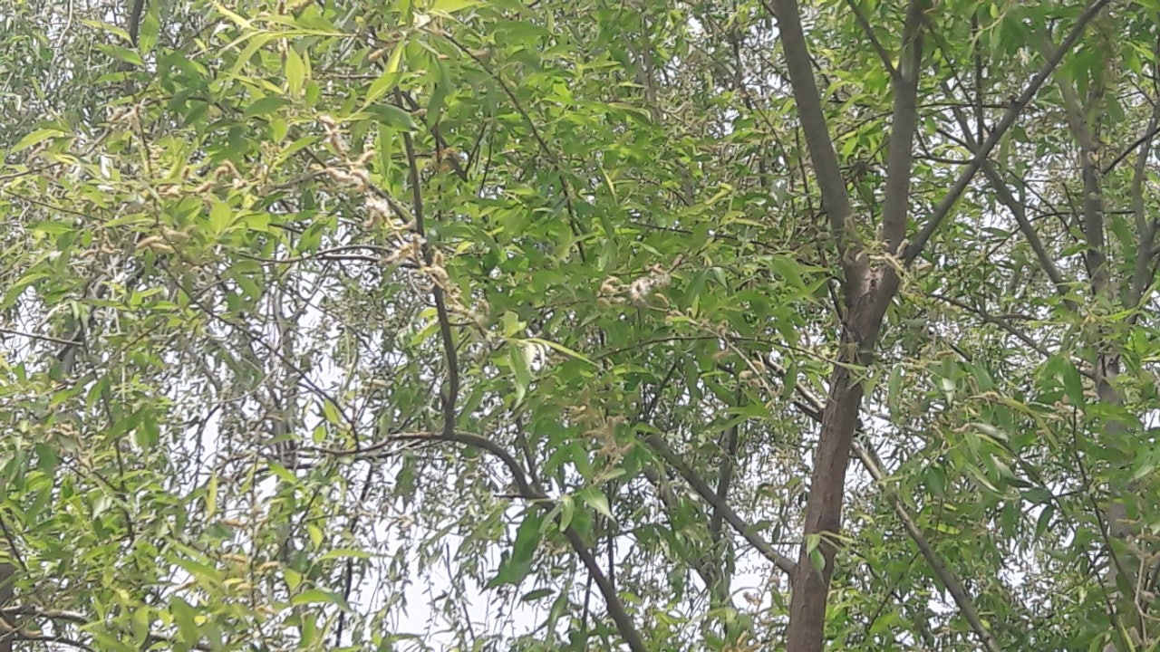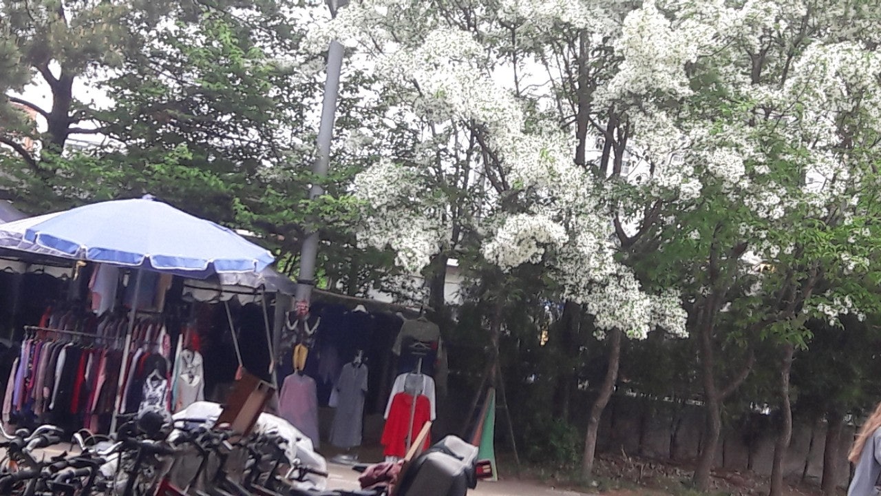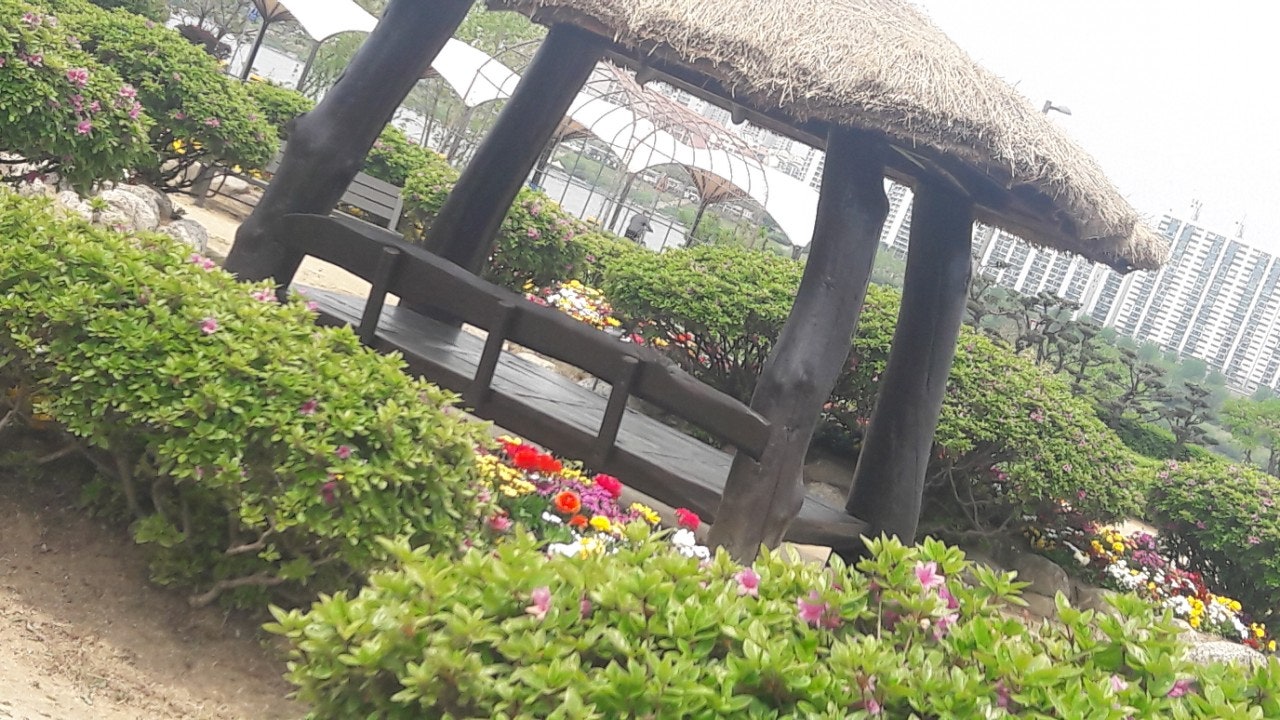 한강 공원 수양버들 조팔나무꽃