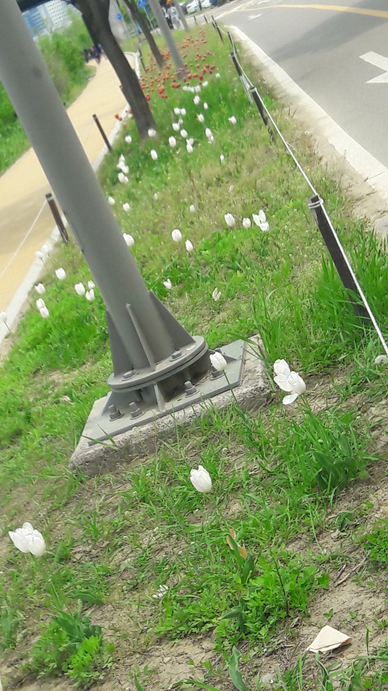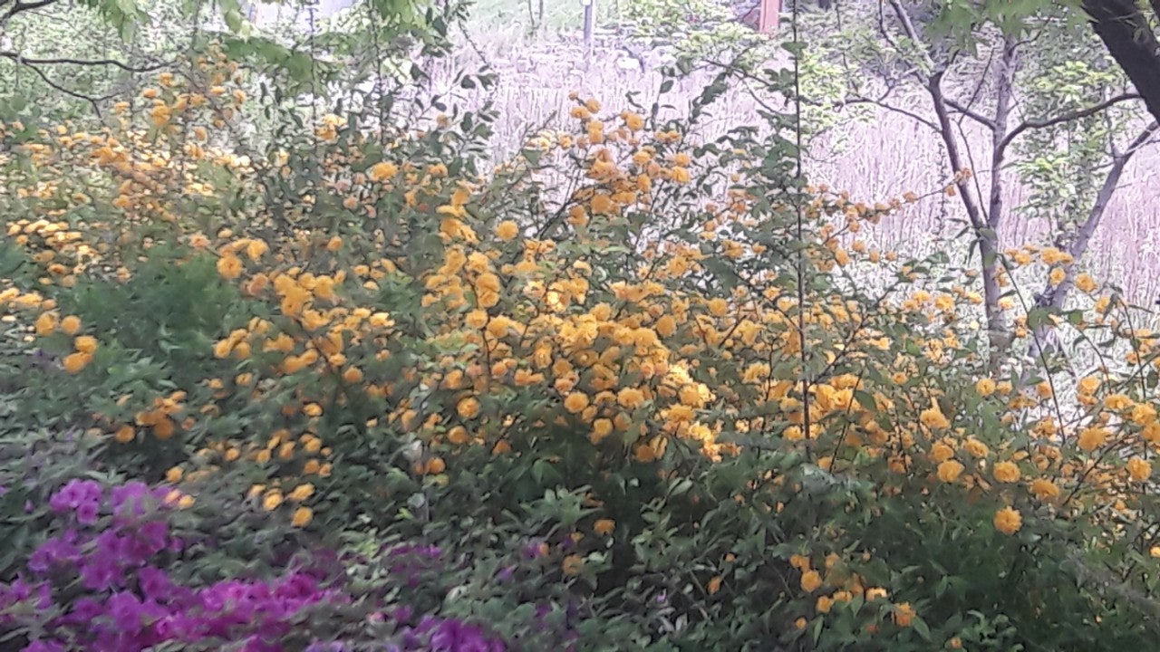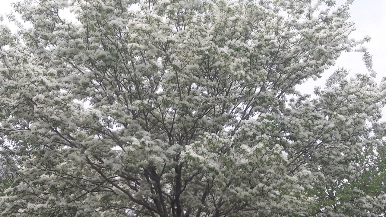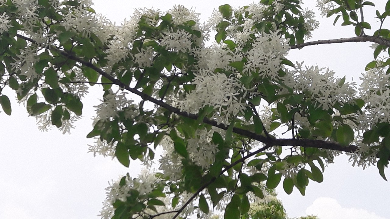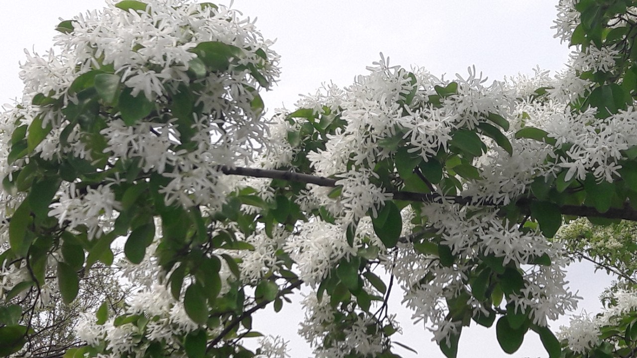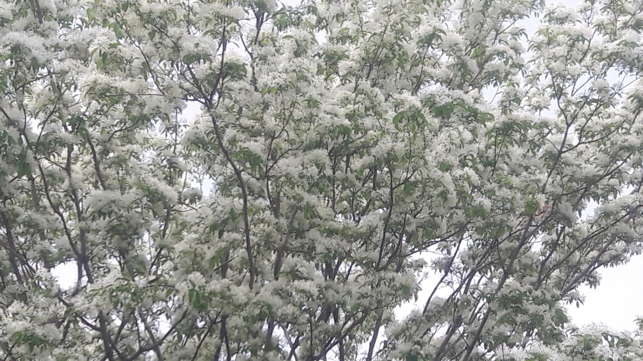 한강 공원 수양버들 조팔나무꽃