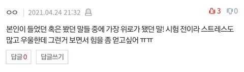 나는 그냥 나 혼자 속으로 힘들어하고 있을때 눈치채고 조심스레 무슨 일 있냐고 물었을때가 제일 위로 됐었당..