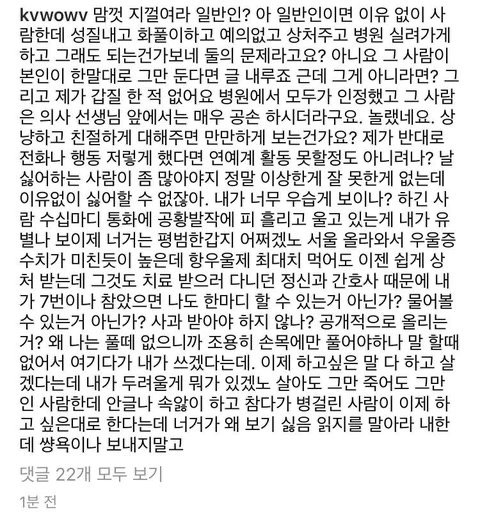 일단 내가 이 글 쓴 이유는 같은 우울증 앓고 있는 사람으로서 안타까운 마음도 있지만 솔직히 그것보다는 얘 말 한마디로 인해서 증거도 없이 아오아 나락으로 간 게 너무 짜증나서 그래. 설현 인스타 봤어? 입에 담기도 심한 욕 먹어 뭐만 하면 욕 먹더라. 우울증 있다고 남의 인생 망쳐도 되는거 아니잖아?