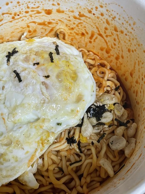 틈새볶음면에 후라이
