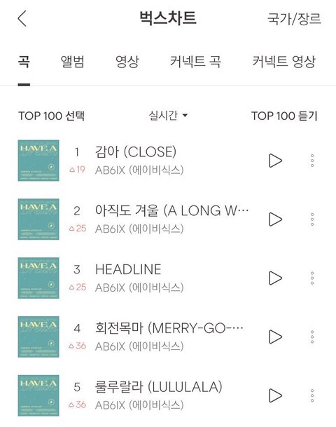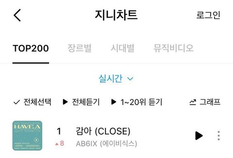 지니에서는 처음으로 1위해봐ㅜㅜㅜㅜ 벅스 줄세우기도 성공했어ㅜㅜ 멜론 진입이랑ㅜㅜ 이대로 더 잘됐으면 좋겠다!! 진짜 다섯곡 다 좋으니까 많관부ㅜㅜㅜ 에이비식스 엡식 전웅 김동현 박우진 이대휘