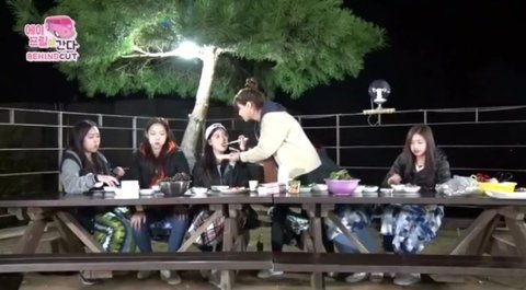 이나은 현주한테 고기 줬네