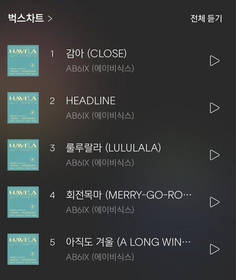 에이비식스 차트 진입