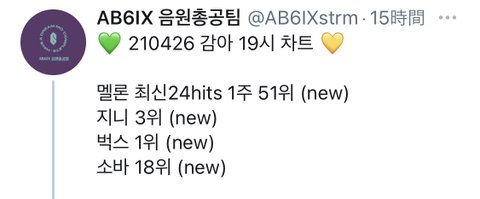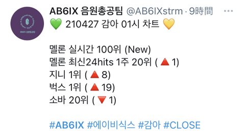 AB6IX 컴백 차트진입