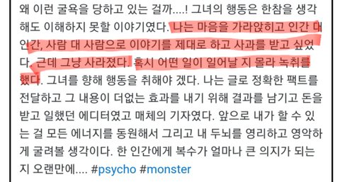 딴건 모르겠고 확실한건 에디터 눈물 흘릴때까지 갑질했다는 거랑 에디터 폭로문에 따르면 전기침, ㅈㄹ 그런표현들 있던데 이런말을 아무데나 붙이진 않지 그리고 연예계 바닥 좁고 훤한데 생계 걸고 폭로했다는것도 중요함