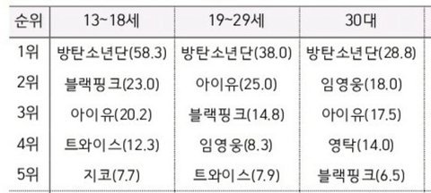 솔직히 갑분싸 어쩌구 ㅈㄴ 프레임씌울려고하는거같음 ㅋㅋㅋ 어떤지표를봐도 방탄이 10대에서 압도적인데