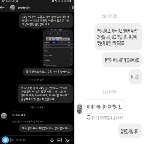 거기서도 사칭하고 다니니까 yg 팬들이 직접 24 작곡가님께 디엠으로 물어봤는데 저런 답장이 왔음