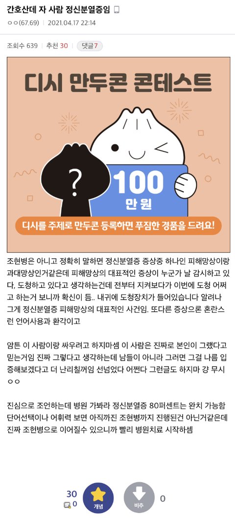 이건 디씨 갤에 걔가 도배하고다니는 글들임. 누가봐도 정신병자