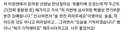 "저 이번에 심사위원 특별상 연기부문 받은 김예리입니다.
