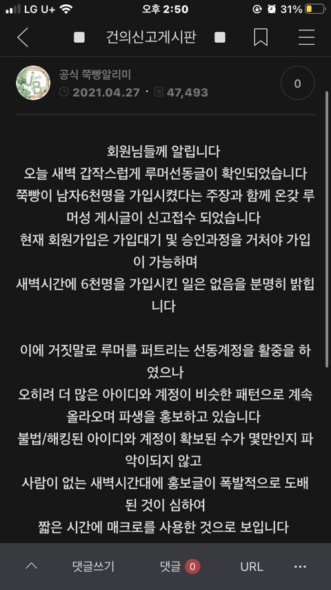 그리고 올라온 남운영자의 공지입니다.