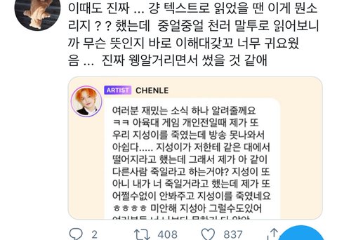 지짜 읽고 먼소리지?... 했는데 ㅅㅂ 철러가 말하는 것처럼 읽어보셈 바로 이해됨 ㅈㄴ 웃겨 나 지금 철러 빙의함 호흡 끊는 것까지 따라하는 중임