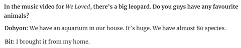 인터뷰에서도 좋아하는 동물에 대해서 물어봤는데