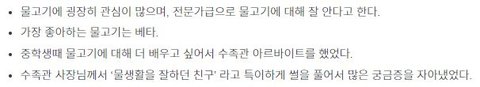 암튼 물고기를 엄청엄청 좋아해서 수족관 알바도 했었다함
