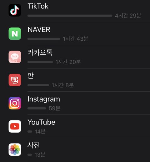 시바 ㅋㅋㅋㅋㅋㅋ 나도 몰랐지 내가 틱톡을 못 끊을 줄은 나 스크린 타임 총합 8시간 20분임.. ㅅㅊㅇ뷰러청순오치이게무야호향수