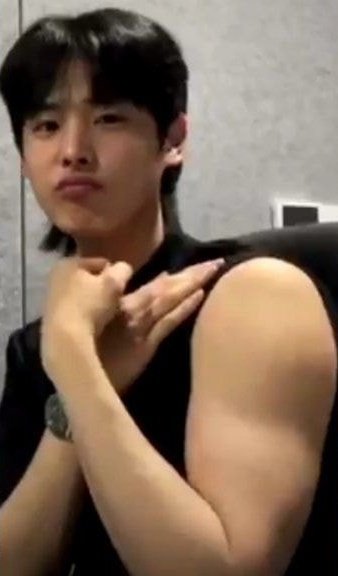 다들 병찬이 팔뚝을 좀 봐줘요