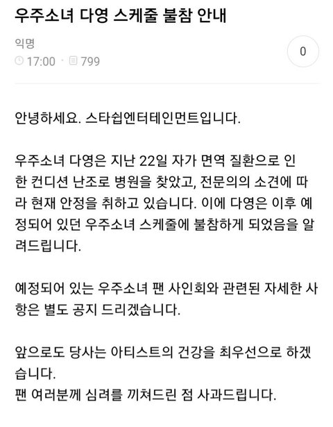 자가 면역 질환으로 인한 컨디션 난조로 현재 안정을 취해야 하는 상태라고ㅠㅠㅠㅠㅠㅠ