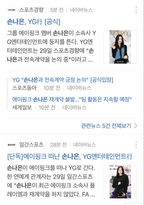 손나은 YG로 소속사 옮기네