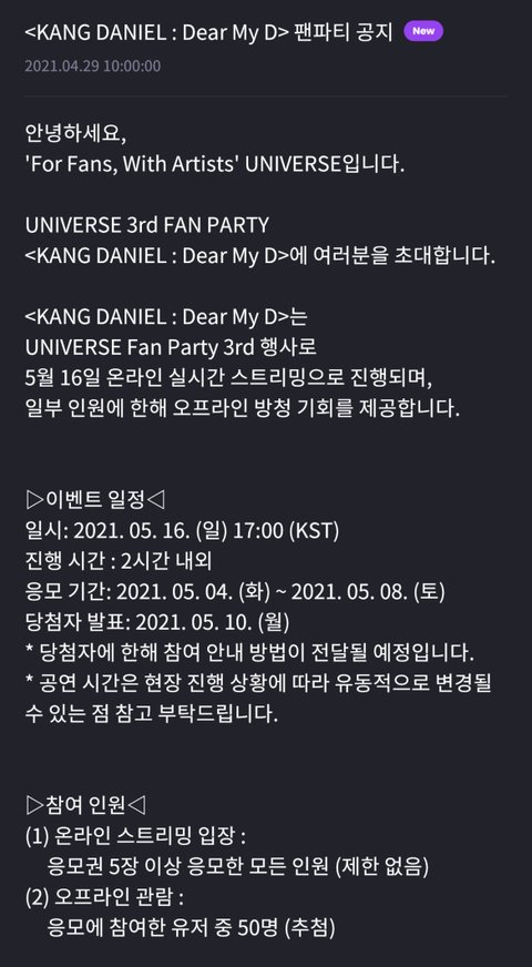 유니버스 팬파티 Dear my D 5/16