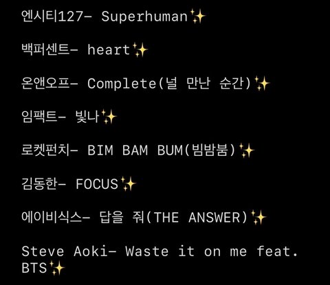 특히 임팩트의 ‘빛나’ 랑 김동한의 ‘focus’ 최근에 알게 됐는데 너무 좋아ㅜㅜㅜ