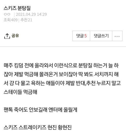 댓글 늘리지말고 톡선 보내지말자고