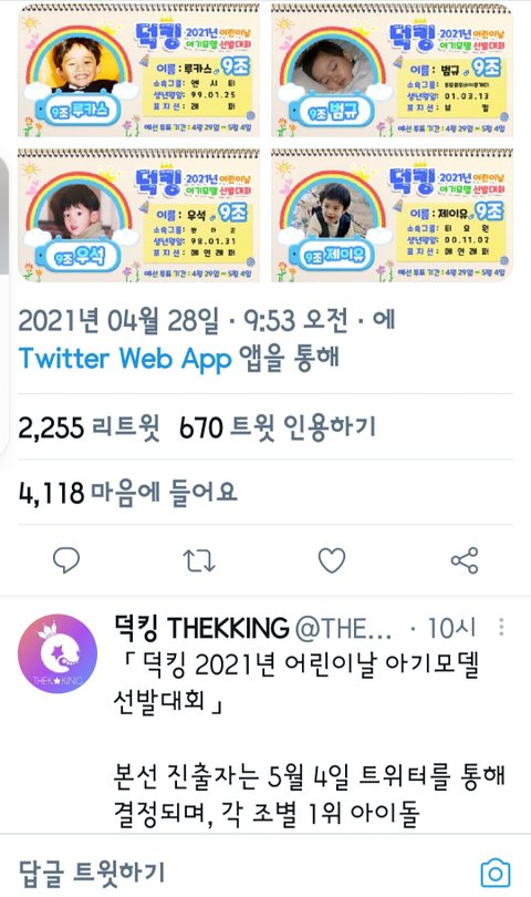 +) 덕킹아기모델 선발대회래.