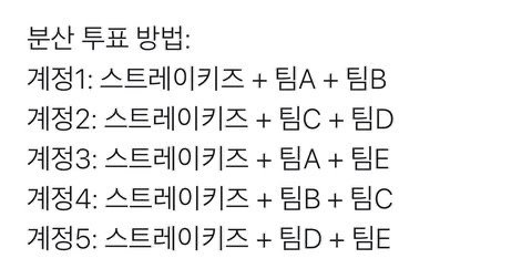 아까 물어보는 스테이 있길래! 계정 5의 배수만큼 만들어서 사진처럼 투표하면 됑